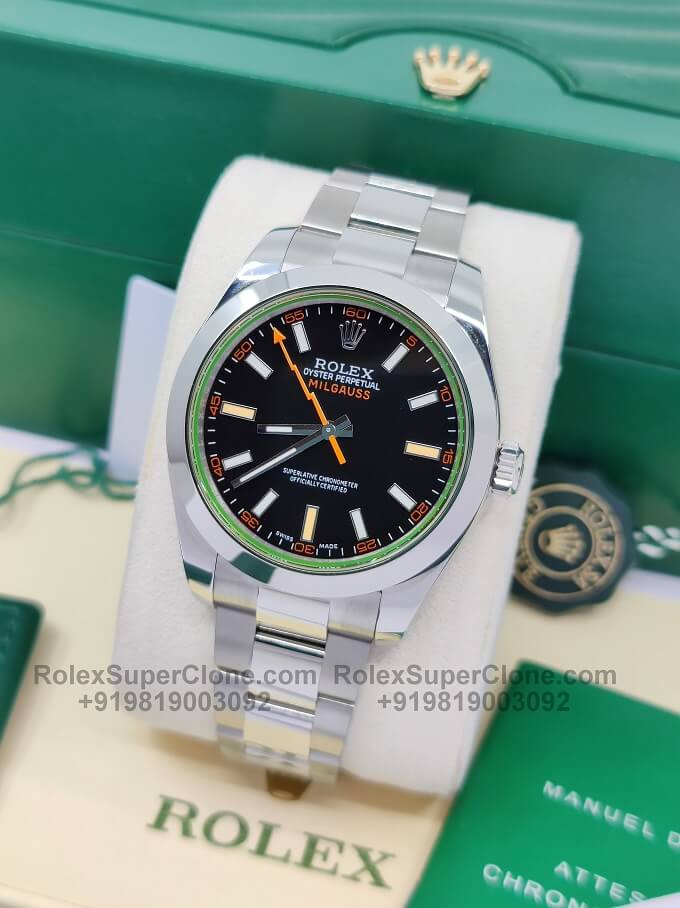 Rolex Milgauss Super Clone Swiss Replica Watch | Black Dial Ref 116400GV | 3131 Swiss Movement with Magnetic Fields Shielding System